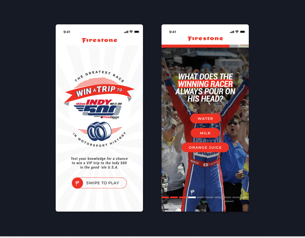 Fun gamification and a vintage branding drove the Firestone Indy500 digital campaign to the podium.